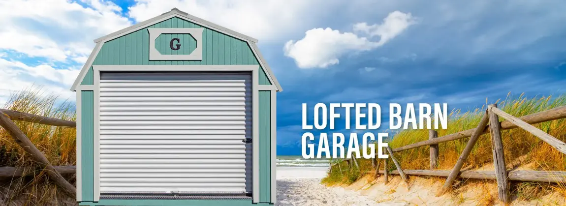 Lofted Barn Garage Are you looking for a quality, functional, and customizable lofted barn garage to suit all your storage needs? Graceland’s Lofted Barn Garages are designed with standard features like sturdy flooring, a patented soffit ventilation system, roll-up garage doors, reinforced 9-lite or solid metal doors, screen ridge vents, and treated runners to ensure high performance.