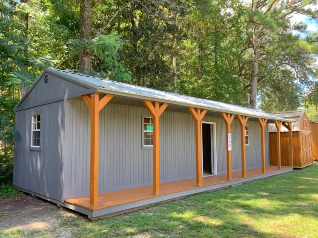 Side Porch Cabins from Graceland Portable Buildings are durable and built with clean lines that make them more functional and appealing. You can imagine how our Side Porch Cabin would appear when installed on your property. The cabins comprise outstanding features such as reinforced doors, ridge vents, a Graceland soffit system, and galvanized ring shank nails, which enhance their functionality, durability and aesthetic value.
