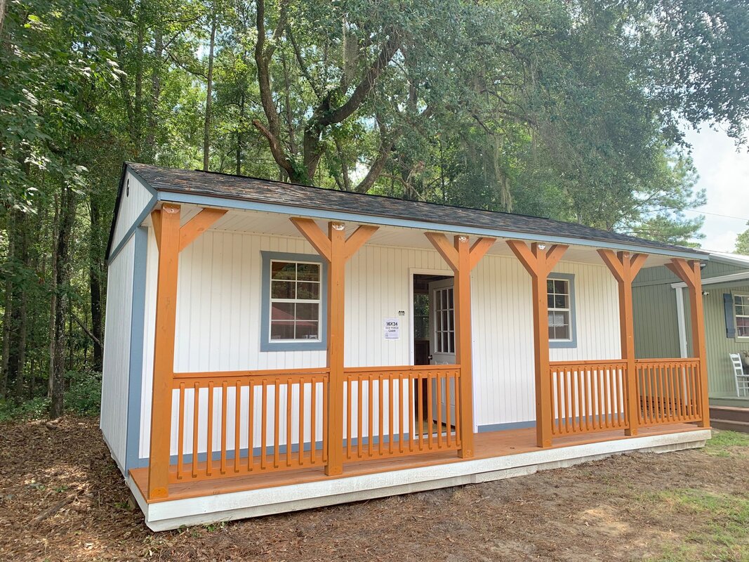 The Side Porch Cabin is among our numerous appealing and functional structures that come in different colors and designs. The beauty of these cabins is that you can customize them further by adding a coordinating trim color, wall color or urethane stain from our exclusive color chart. The side porch cabin has enough space to meet your living space needs and some room for porch gathering.